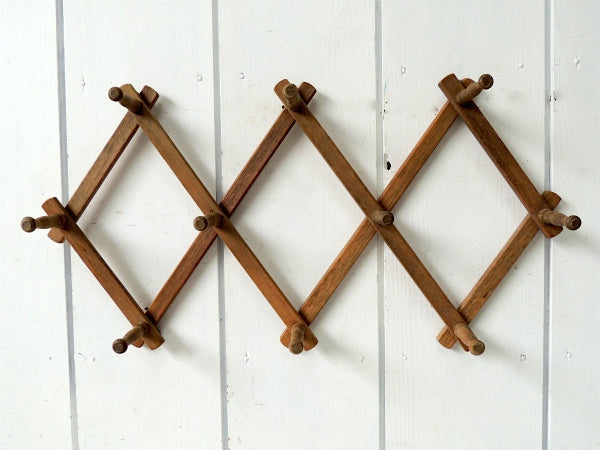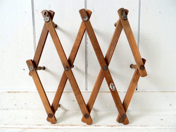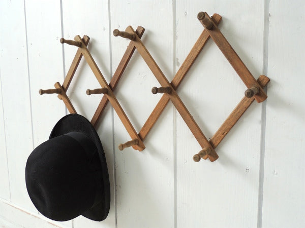 【NEVCO】ジャバラ式・木製・アンティーク・ハットラック・コートフック・インテリア