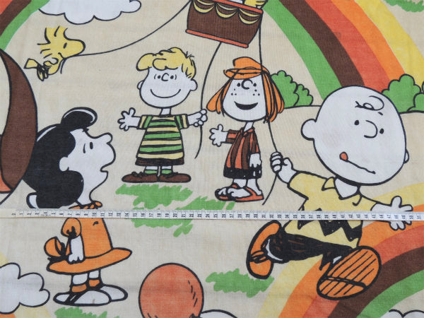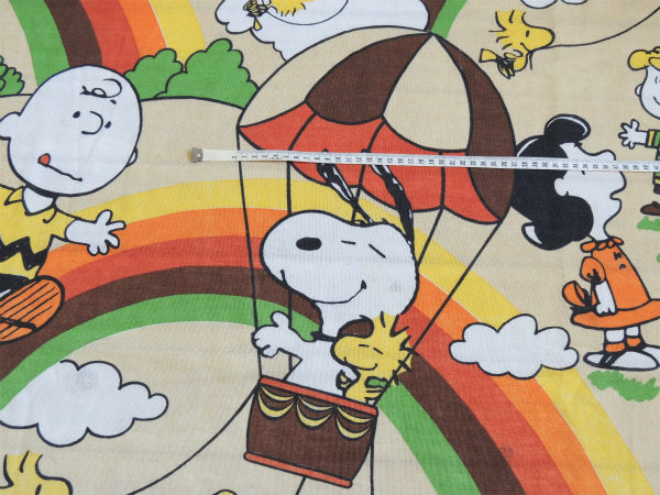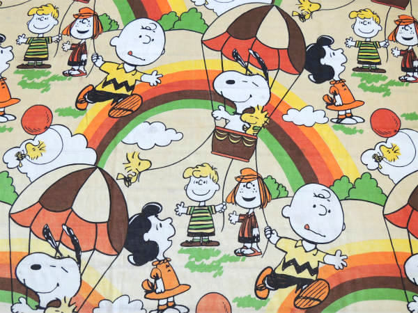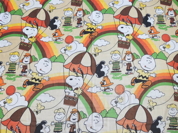 スヌーピー ピーナッツの仲間たち レインボー 気球柄 60's ヴィンテージ ベッドスプレッド ベッドカバー 大判サイズ USA