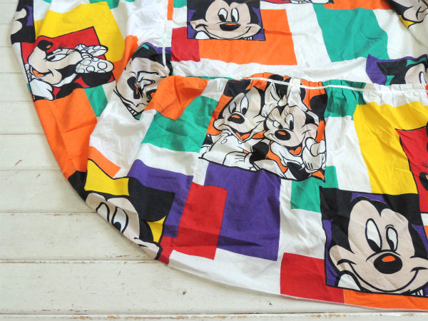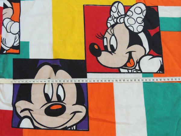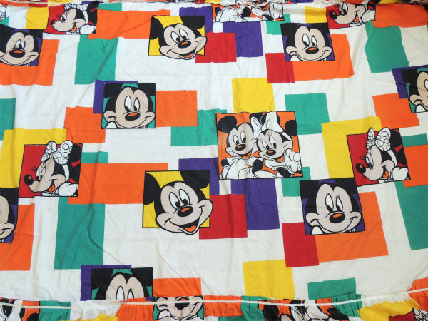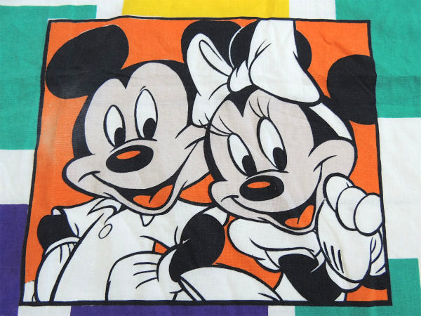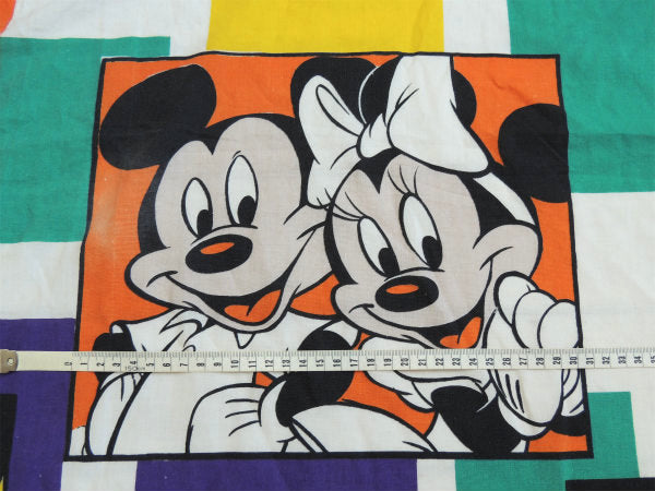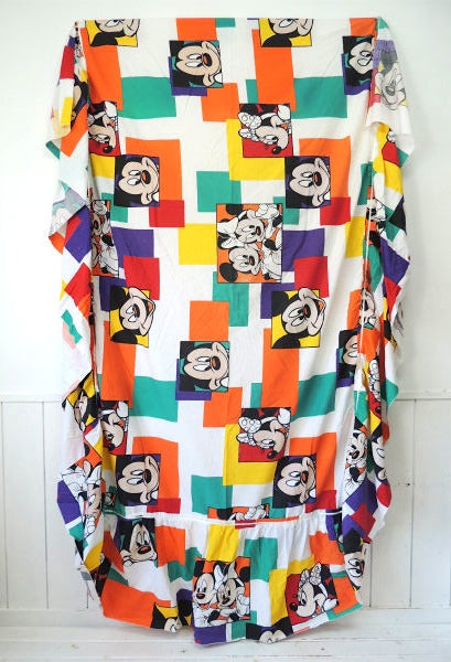 【ミッキーマウス&ミニーマウス】ブロック柄・大きなヴィンテージ・ベッドスプレッド・ベッドカバー