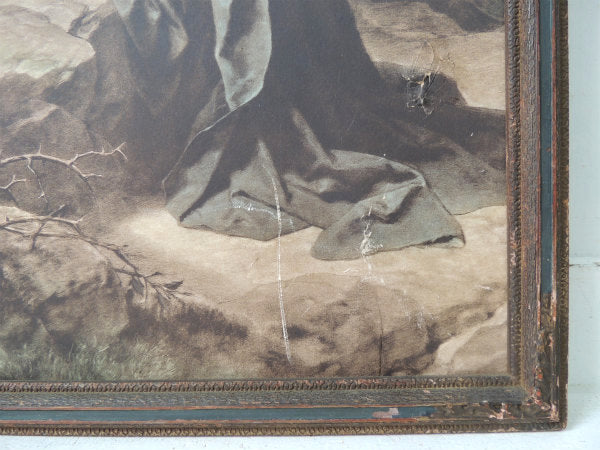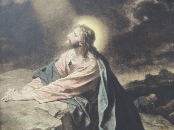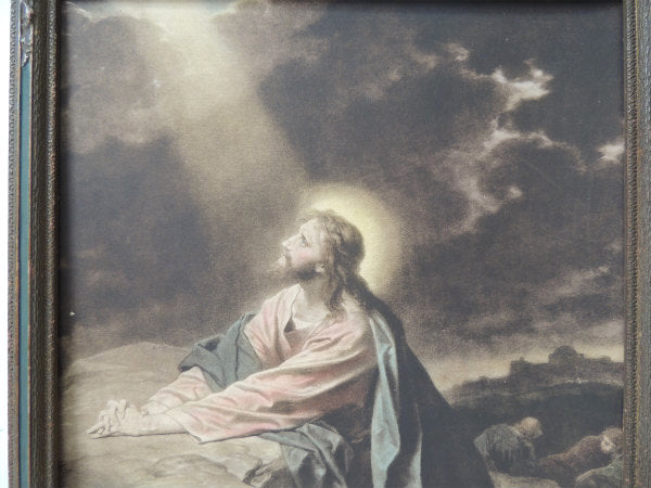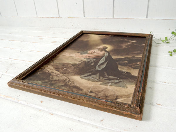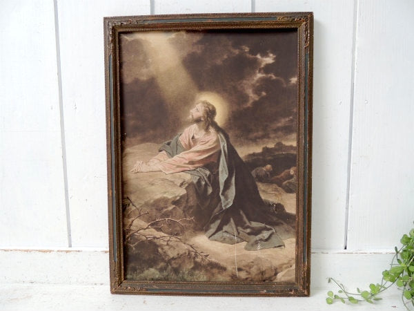 ゲツセマネの祈り1900-1920年 イエスキリスト・木製フレーム・アンティーク・額縁 装飾 聖品