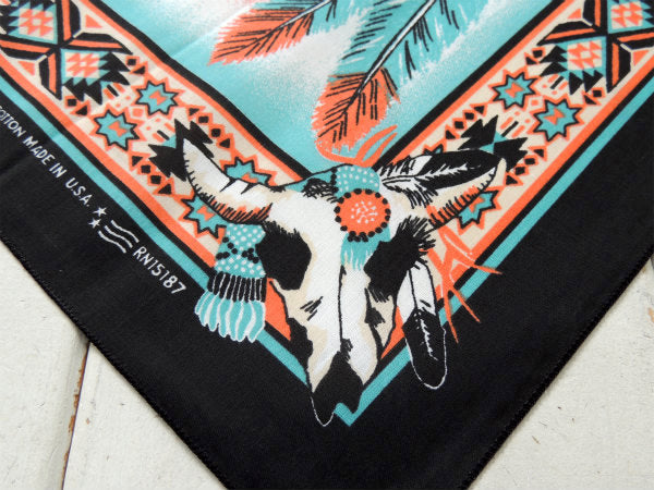 バッファロースカル ネイティブアメリカン・ヴィンテージ・バンダナ・ターコイズ USA インディアン