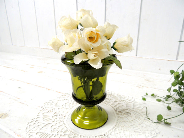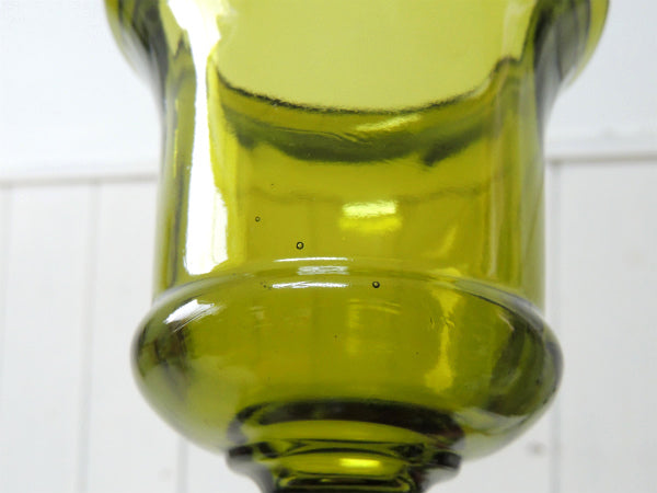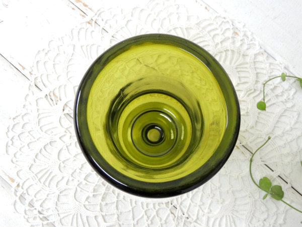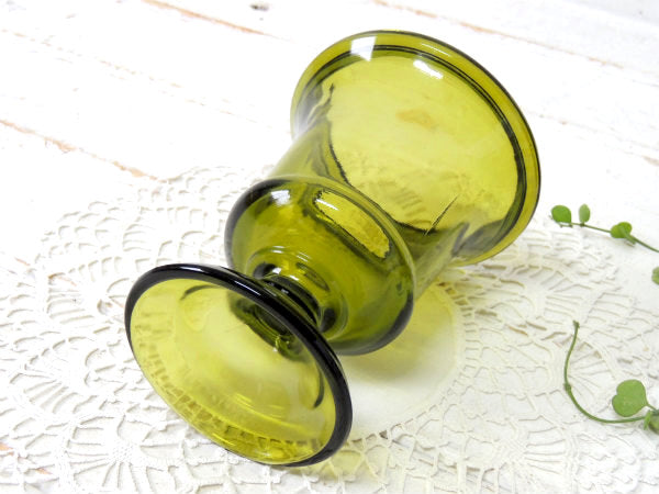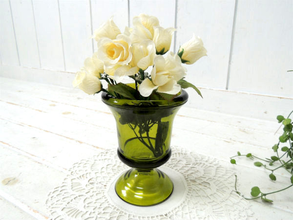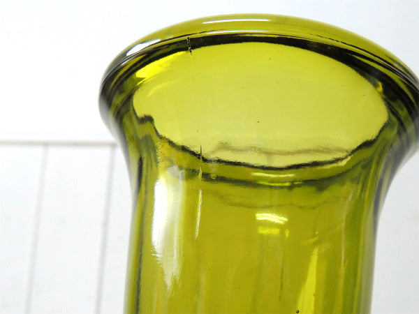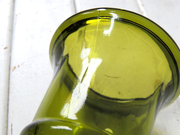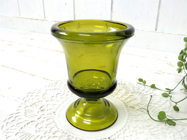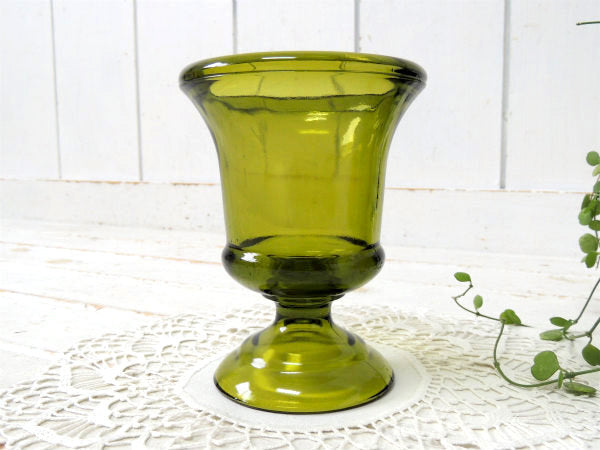 【ミッドセンチュリー】グリーンアンバー・USAガラス製・ヴィンテージ・フラワーベース・花瓶・脚付き