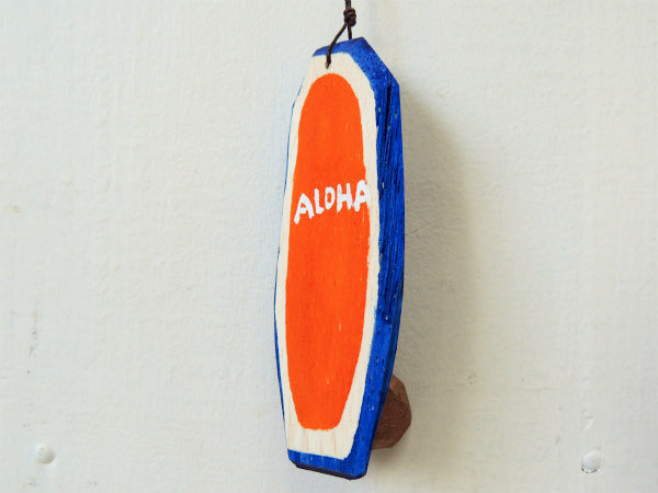 【ALOHA】松田大児作・ブルー×オレンジ・木製・ミニサーフボード・オブジェ⑪