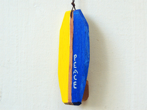 【PEACE】松田大児作・イエロー×ブルー・木製・ミニサーフボード・オブジェ⑬