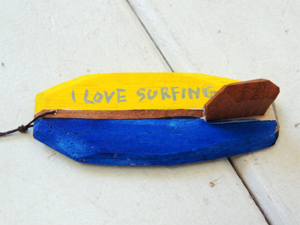 表に【PEACE】、裏に【I LOVE SURFING】の手描きメッセージが描かれております。