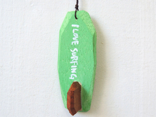 【I LOVE SURFING】松田大児・ミントグリーン・木製・ミニサーフボード・オブジェ⑮