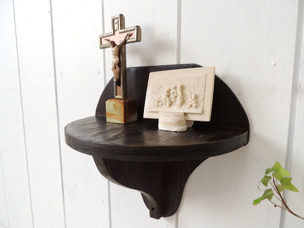 レトロモダン・木製・ダークブラウン・アンティーク・ウォールシェルフ・飾り棚・棚受け USA