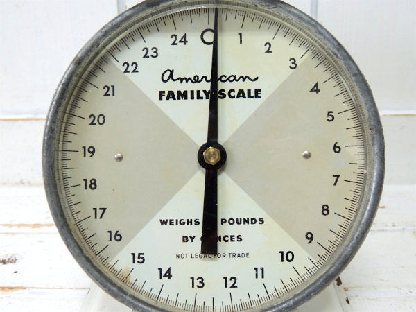 アイボリー×グレー色の文字盤に【American FAMILY SCALE / WEIGHS 25 POUNDS BY OUNCES / NOT LEGAL FOR TRADE】と英文字が入っております。