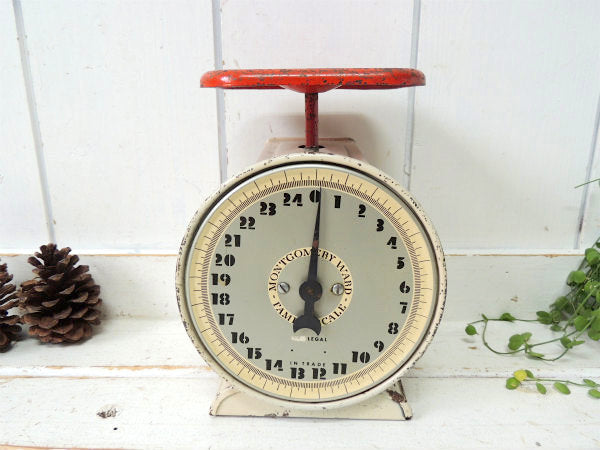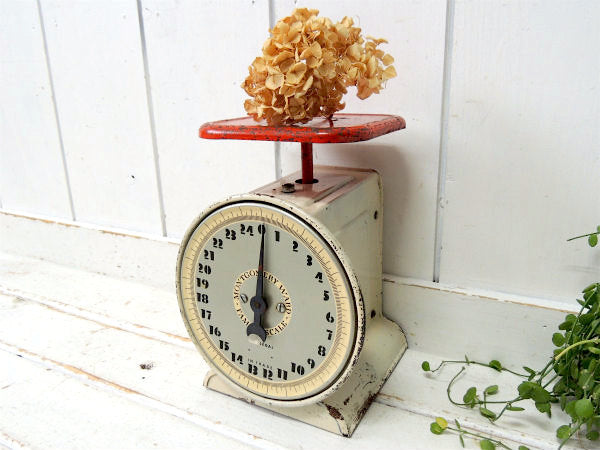 MONTGOMERY WARD アイボリー×赤・アンティーク・スケール・量り・キッチンスケール