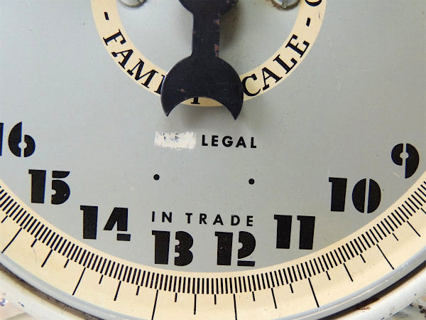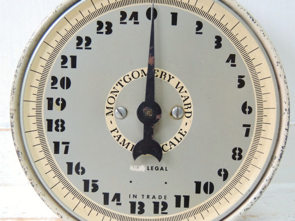 アイボリー×シルバーグレー色の文字盤に【MONTGOMERY WARD FAMILY SCALE / LEGAL IN TRADE】と英文字が入っております。