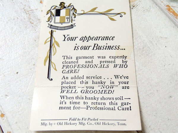 クリーニング店や衣料品店が装飾用スーツのポケットアクセサリーとして使用した宣伝品です。