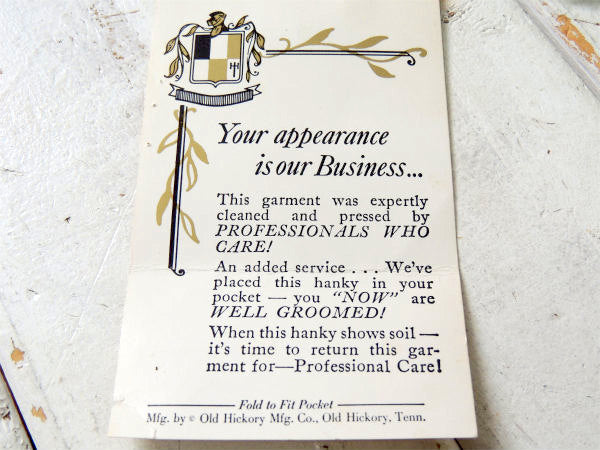 クリーニング店や衣料品店が装飾用スーツのポケットアクセサリーとして使用した宣伝品です。