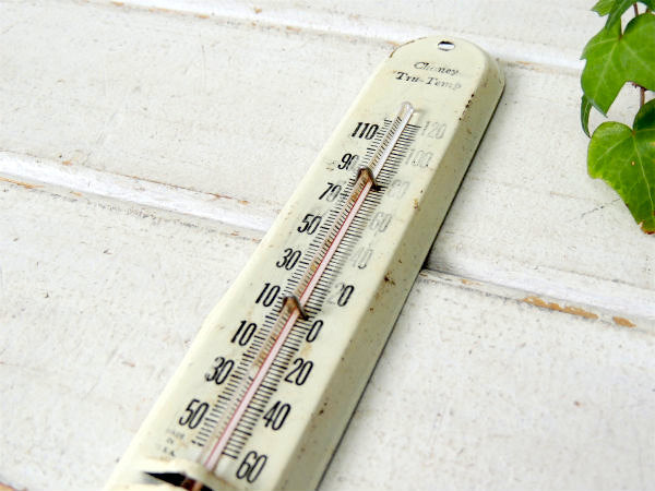 【Chaney】シャビー・アイボリー・ホーロー製・ヴィンテージ・温度計・サーモメーター USA