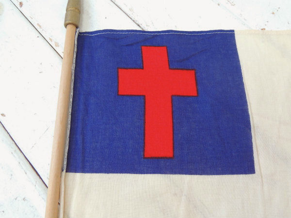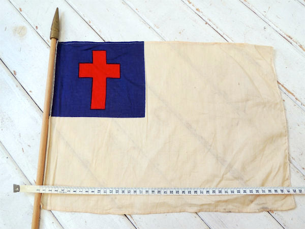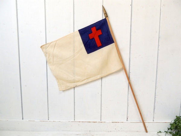 クリスチャンフラッグ 十字架・キリスト教・木製ポール付き・アンティーク・フラッグ・旗 USA・教会