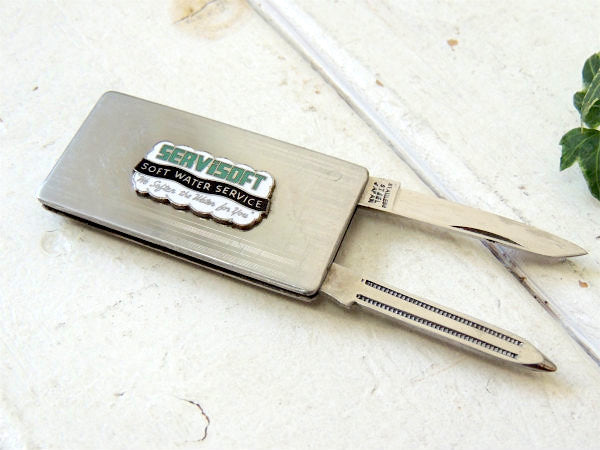 アメリカ西海岸・サンフランシスコで見つけました・・『SOFT WATER SERVICE』のアドバタイジング・ヴィンテージ・ポケットナイフ&マネークリップ(ナイフ&ヤスリ付き)です。