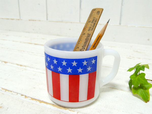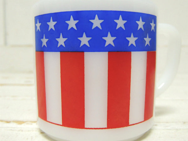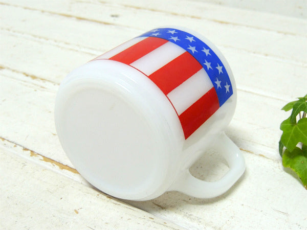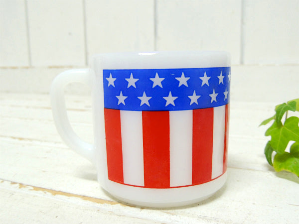 アメリカ南部・テキサス州で見つけました・・『FEDERAL GLASS COMPANY(フェデラルグラス)社』のミルクガラス製・アメリカンフラッグ柄・ヴィンテージ・マグカップです。