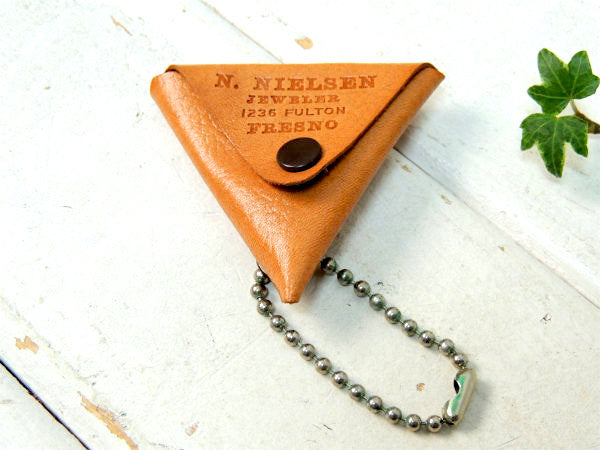 アメリカ西海岸 カリフォルニア州 で見つけました・・1940's~1950's頃 USA・フレズノ・宝石店・デッドストック・当時物・オールド ボールチェーン付き・アドバタイジング・ヴィンテージ・コインケース(携帯型・宝石ケース・keyケース キーホルダー )です。