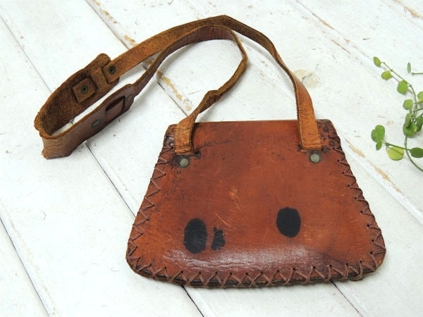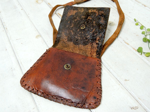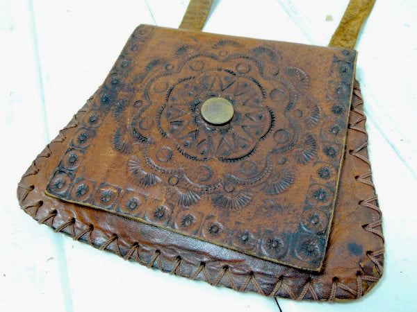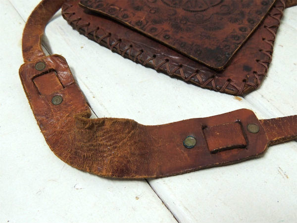 アメリカ西海岸・サンフランシスコで見つけました・・型押しレザー製のヴィンテージ・ショルダーポーチです。