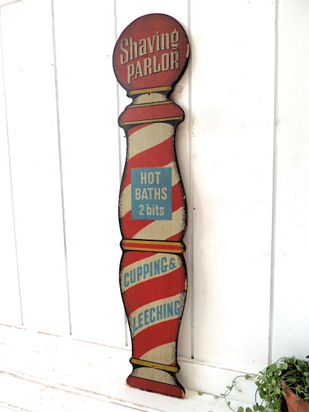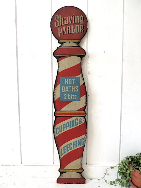 "BARBER SHOP・サインポール型サイン"Shaving PARLOR・トリコロールカラー・サイン(プレート)ヴィンテージ・看板です。