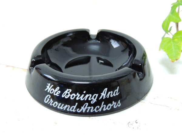 ツヤのある黒色ガラス製、【Permanent Dead Man Co】【Hole Boring AND Ground Anchors】【Bakersfield, Calif】と筆記体の英文字が入っております。