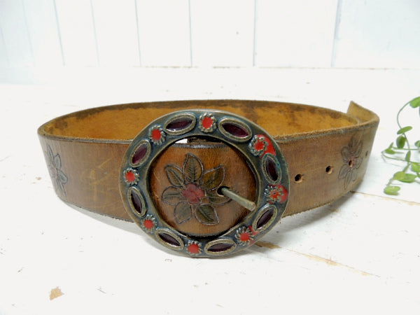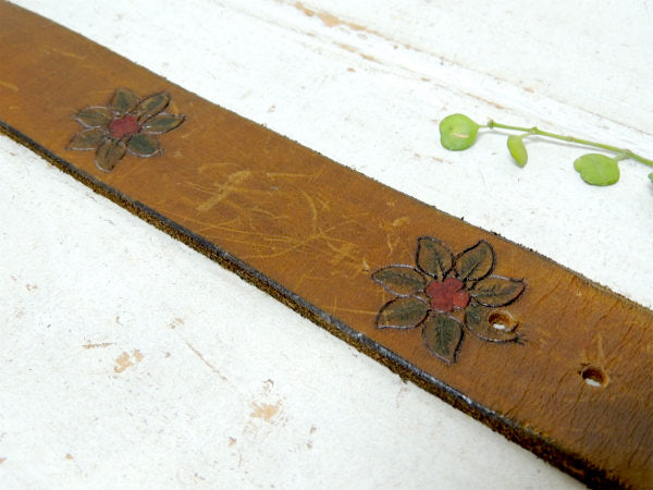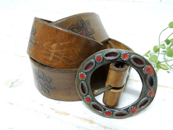 フラワー型押しデザイン・革製・70'sヴィンテージ・レザーベルト・古着 USA