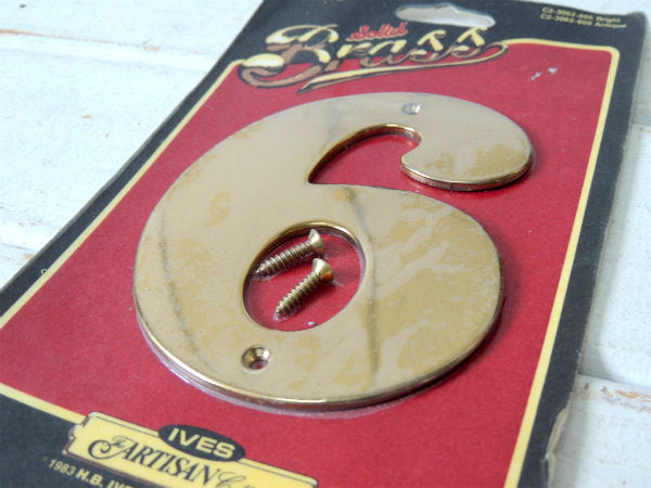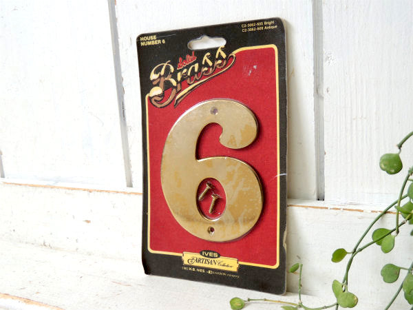 アメリカ西海岸・サンフランシスコで見つけました・・建材・真鍮製:BRASSのヴィンテージ・ナンバーサイン“6”(看板)ハウスナンバー・専用ネジ付きです。