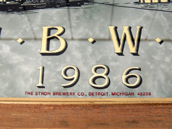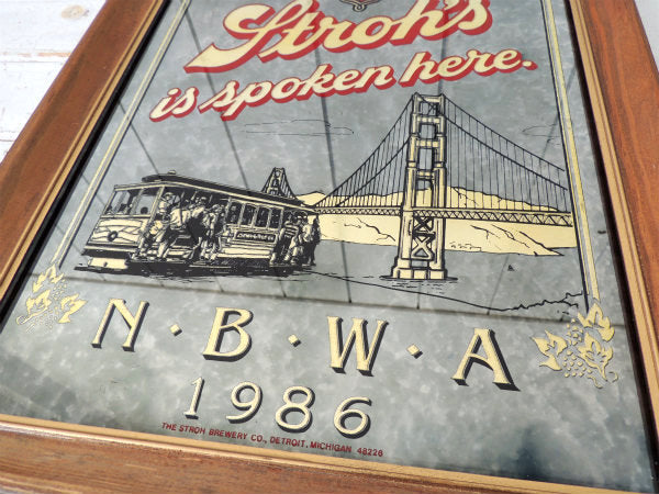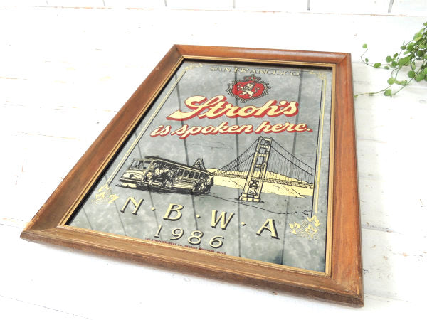 アメリカ西海岸・サンフランシスコで見つけました・・”ストローズ 「 Stroh's 」” アメリカのビールサイン”N・B・W・A 1986”アドバタイジング・ヴィンテージ・パブミラー(鏡)です。