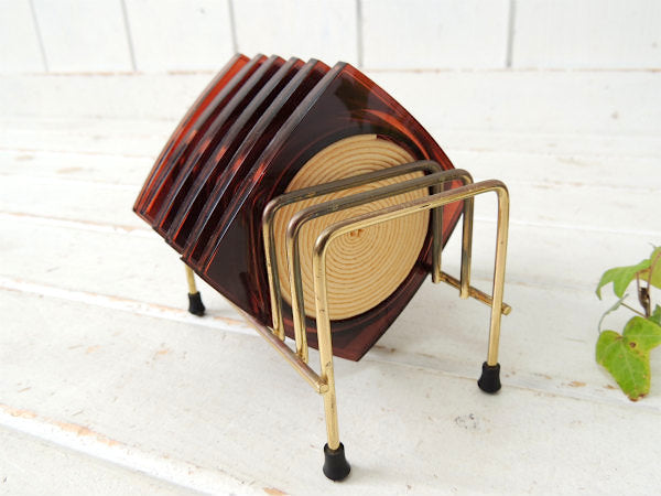 ミッドセンチュリー・ヴィンテージ・コースターセット・専用スタンド付き・ USA