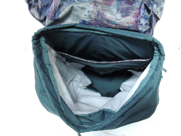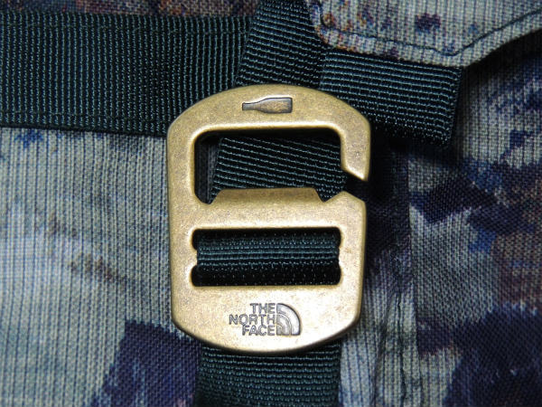 シンプルな内部構造で使いやすく、外側のコンプレッションストラップには真鍮カラーのボトルオープナー兼用の金具を装備。