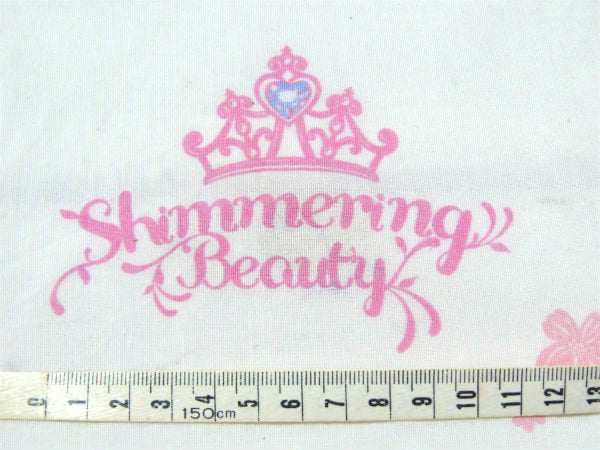 ホワイトベースに、ディズニー映画に登場するお姫様のキャラクター【シンデレラ】【眠れる森の美女のオーロラ姫】【美女と野獣のベル】&【Shimmering Beauty(きらめく美しさ)ロゴ】の、メルヘンな総柄プリントです。