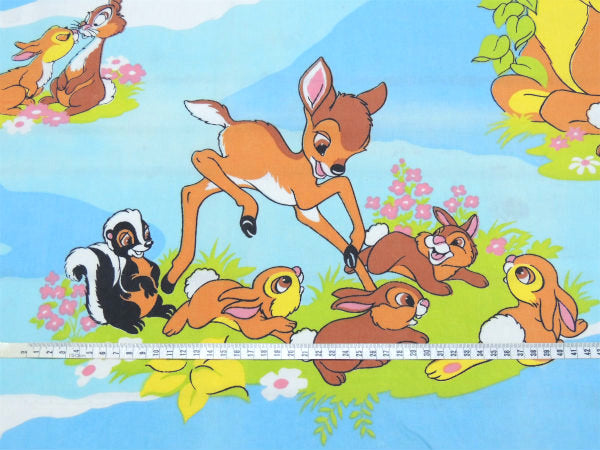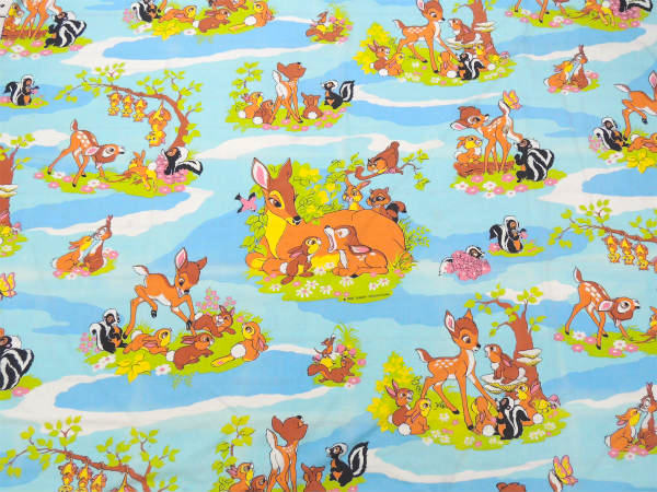 【バンビ】ディズニー・子鹿バンビ&フラワー・70'sヴィンテージ・USEDフラットシーツ(1/2)