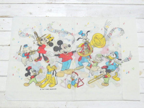 アメリカ西海岸・カリフォルニア州で見つけました・・『ミッキー&フレンズ』のオーケストラ柄・ヴィンテージ・USEDピロケース(枕カバー)です。