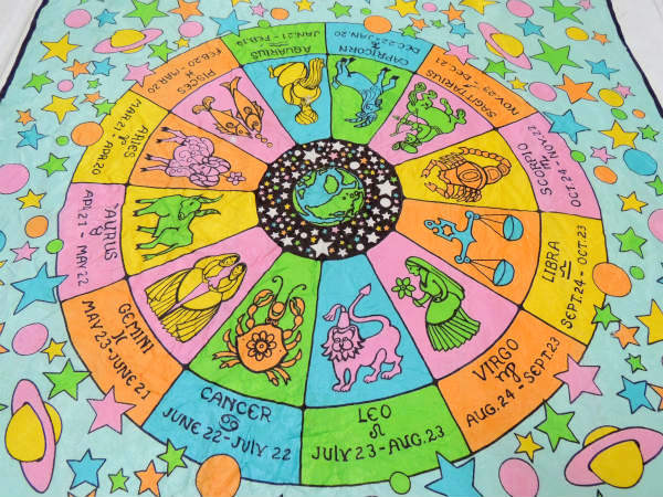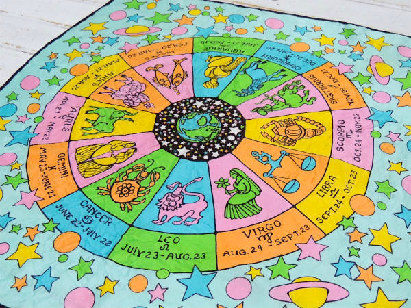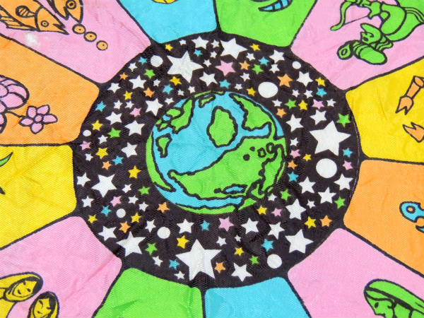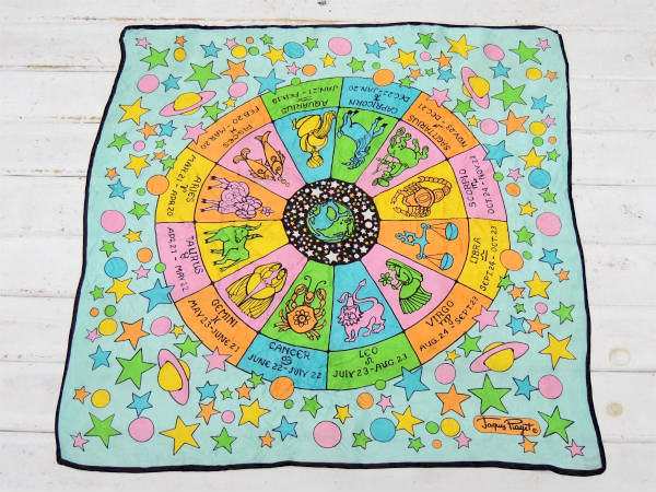【60s・JaquesPiaget】イタリア・地球&ホロスコープ・サイケ・ビンテージ・スカーフ・古着