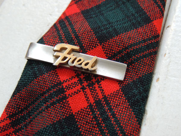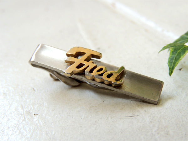”Fred・フレッド”シルバー×ゴールドトーン・オシャレな”イニシャル・デザイン”ヴィンテージ・タイピン(タイバー)です。