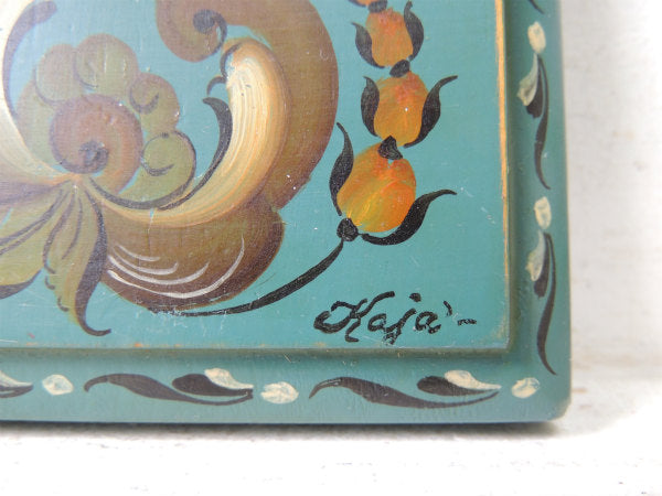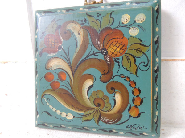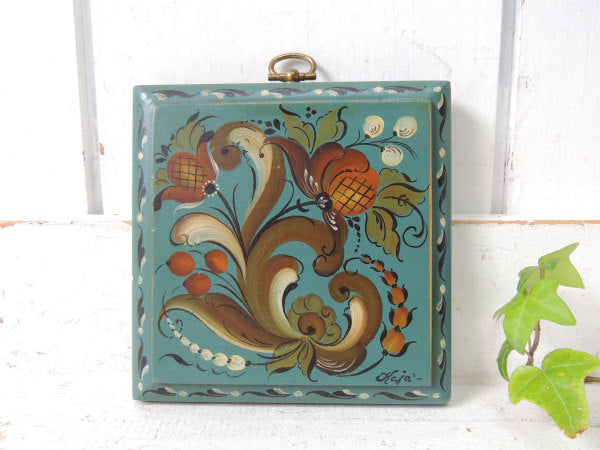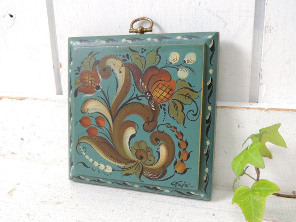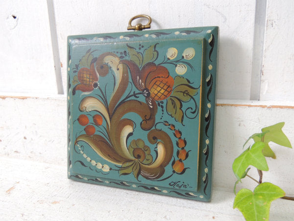 【シックなカラー&フラワー柄】トールペイント・木製・ヴィンテージ・壁掛け・ハンドペイント・USA