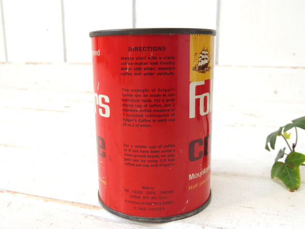 アメリカ西海岸・サンフランシスコで見つけました・・アメリカの老舗コーヒーブランド『Folgers COFFEE(フォルジャーズ)Regular grind Mountain Grown』のヴィンテージ・ティン缶です。