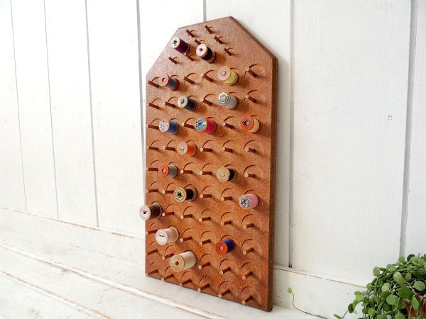 木製・壁掛け式・ヴィンテージ・スプールホルダー・糸巻きホルダー・ボビンホルダー・裁縫用品 USA