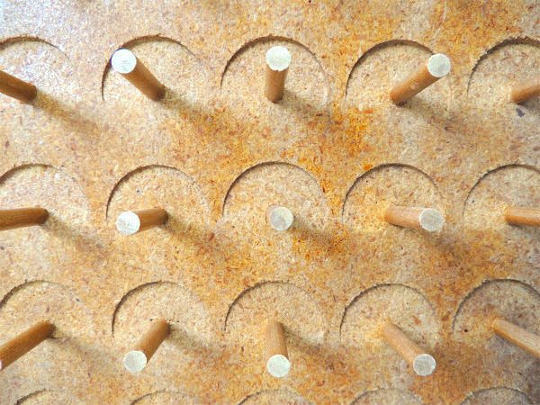 糸巻きやボビンを収納するための壁付け式・糸巻きホルダーで、糸巻きを69本収納することができます。