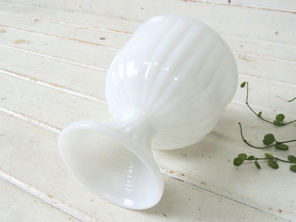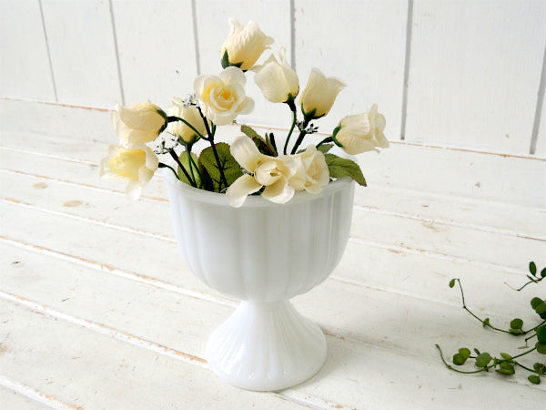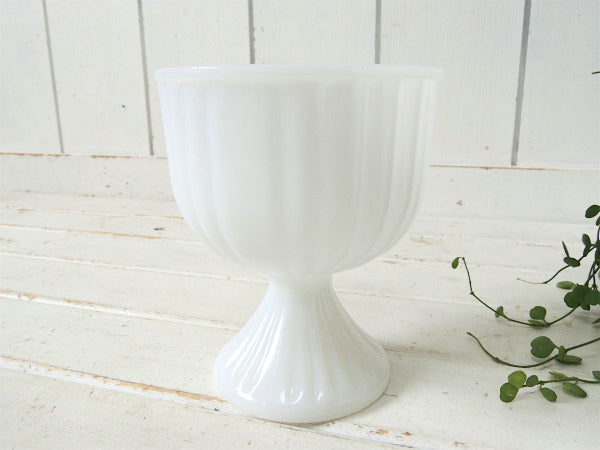 【ミルクガラス】ホワイトカラー・ヴィンテージ・脚付きフラワーベース・花器・コンポート器・花瓶 USA