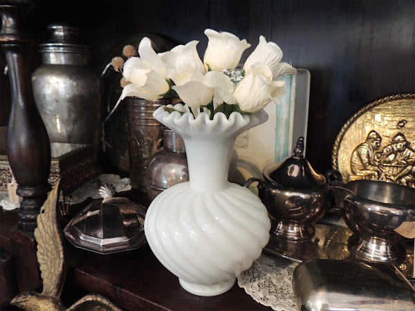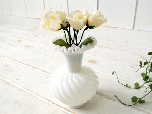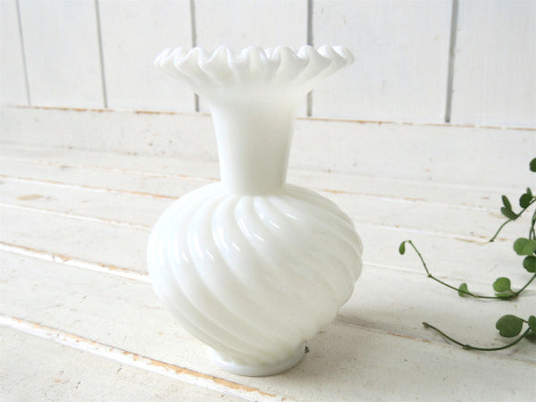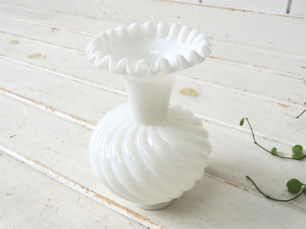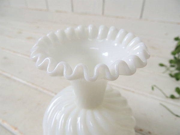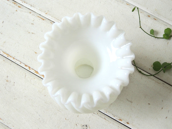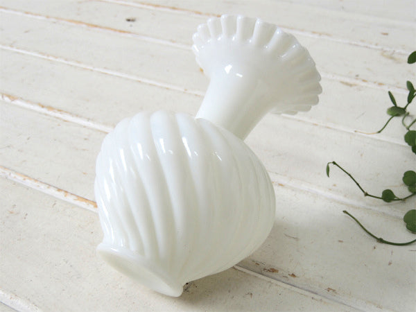 【フリルカット】ホワイトカラー・ミルクガラス製・ヴィンテージ・フラワーベース・花器・花瓶 USA
