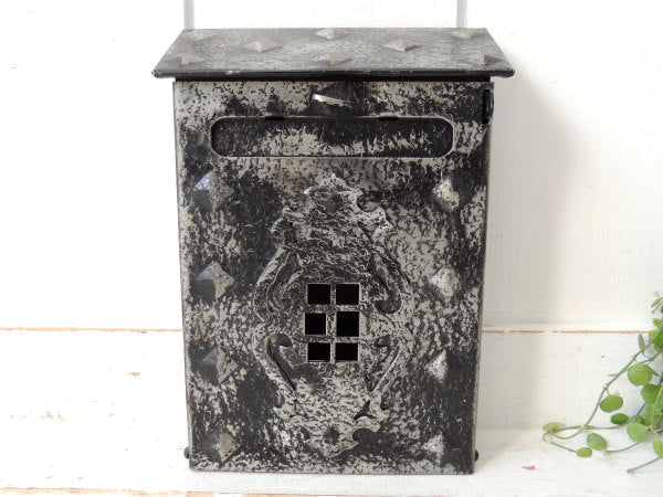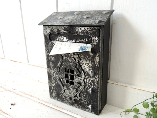 アメリカ西海岸・サンフランシスコで見つけました・・インダストリアル 黒色×シルバートーンのアイアン製・ヴィンテージ・メールボックス(郵便受け)です。