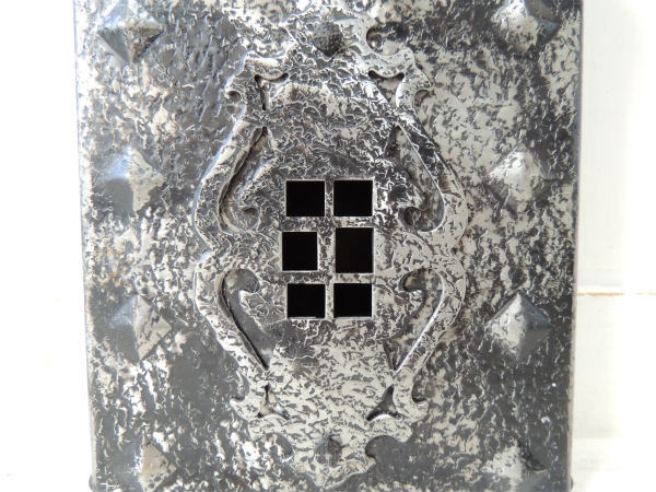 アイアンのずっしりとした重みがあり、トップとフロントにはスタッズのような凸凹デザインの装飾がございます。