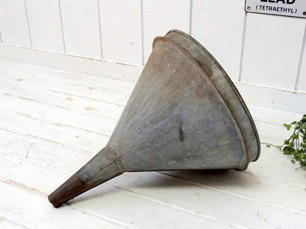 アメリカ西海岸・サンフランシスコの田舎町で見つけました・・オールド・アメリカン・特大(ラージ)サイズのブリキ製・ヴィンテージ・漏斗(じょうご/ファンネル)です。