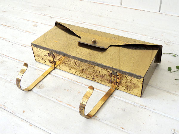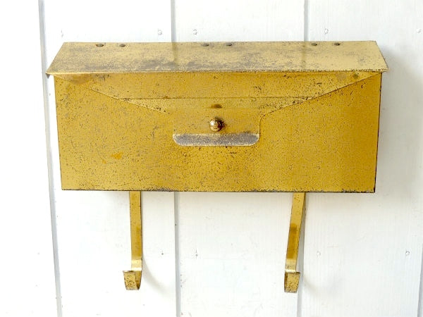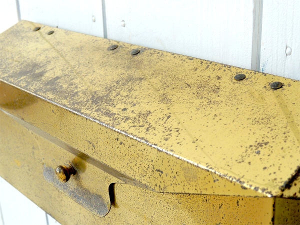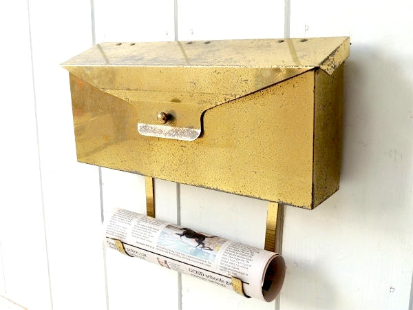 【ゴールド・新聞受け付き】横型・ヴィンテージ・メールボックス・郵便受け・ポスト・ミッドセンチュリー