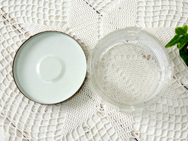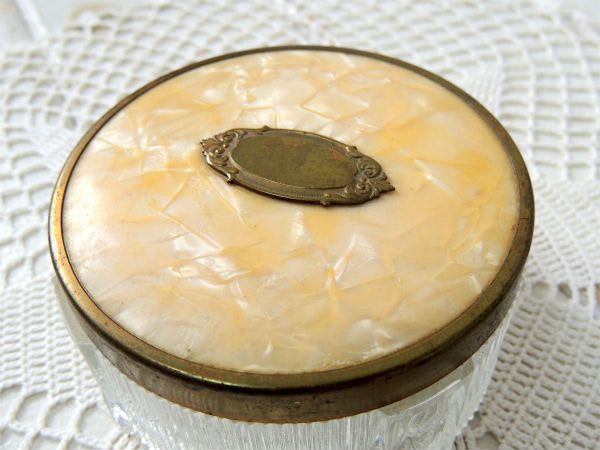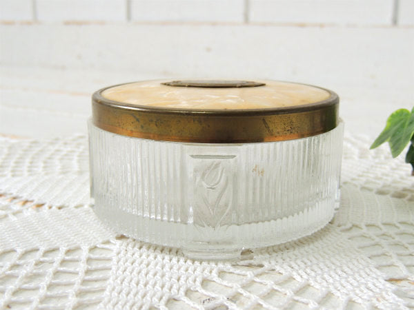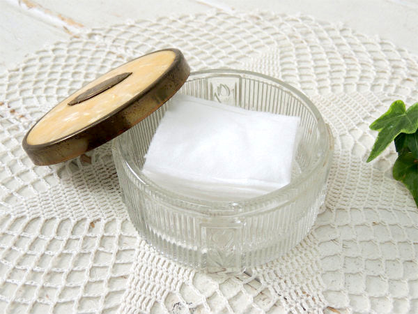 アメリカ西海岸・サンフランシスコの旧家で見つけました・・アール・デコ・デザインのお洒落なガラス製・アンティーク・パウダーケース(クリーム瓶)です。
