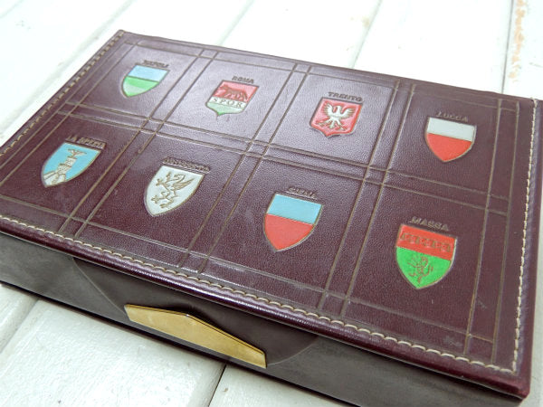 フタ上部に、イタリアの都市【NAPOLI】【ROMA】【TRENTO】【LUCCA】【LA SPEZIA】【GROSSETO】【SIENA】【MASSA】の紋章の型押しされた素敵な装飾が施されています。