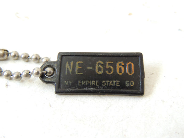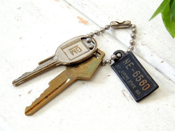 アメリカ南部・テキサス州で見つけてきました! ニューヨーク・ナンバープレート型 " NY EMPIRE STATE 60"・ヴィンテージ キーホルダー+古鍵 2本付き(GM キャデラック&真鍮キー ボールチェーン付き)
