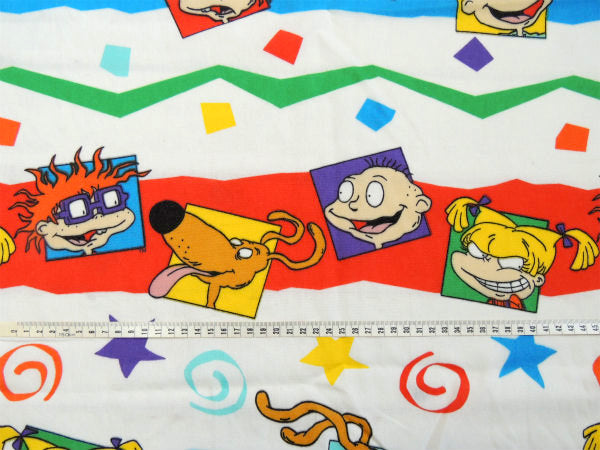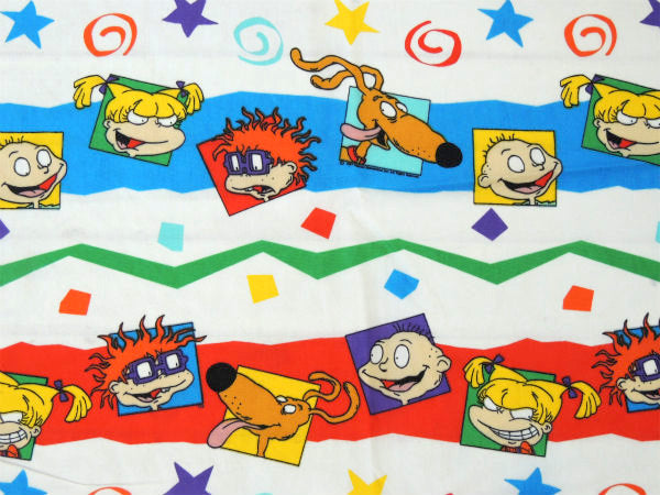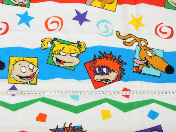アメリカ西海岸・カリフォルニア州で見つけました・・1才前後の赤ちゃん6人の冒険をユーモアたっぷりに描いた全米で大人気のファミリーアニメ・映画版『ラグラッツムービー(RUGRATS MOVIE)』のヴィンテージ・USEDフラットシーツです(ツインサイズ)。