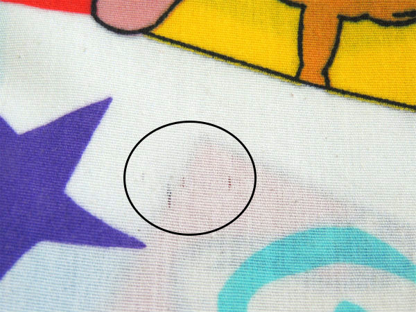 プリントの発色良く、生地もしっかりしておりますが、数箇所に生地の突っ張り箇所等ございます。
