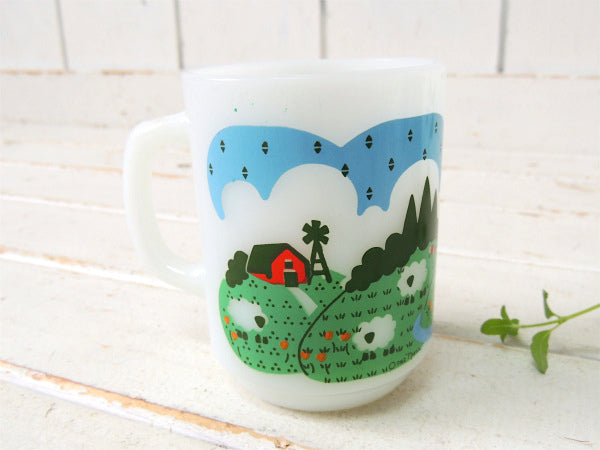 【Fire King】ファイヤーキング・メドウズ・羊&牧場柄・ヴィンテージ・マグカップ・食器 USA